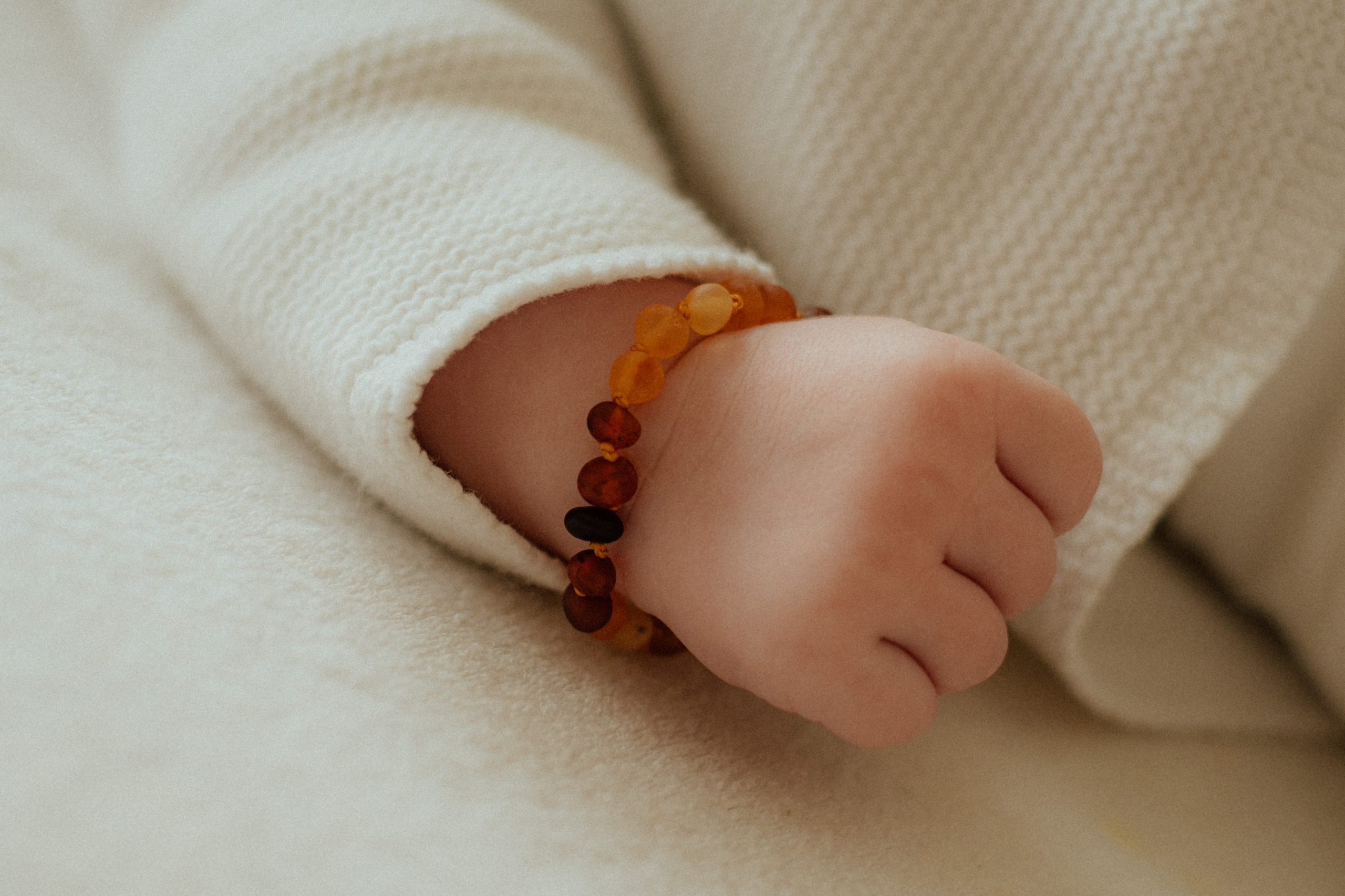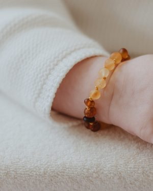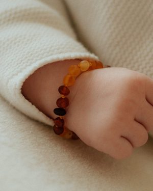 Veel moeders zweren bij de verzachtende werking van barnsteen voor hun baby bij het doorkomen van de tandjes. Dit armbandje is met de hand gemaakt. Na iedere barnsteen zit een knoopje om te voorkomen dat de losse steentje ingeslikt kunnen worden mocht de armband breken.