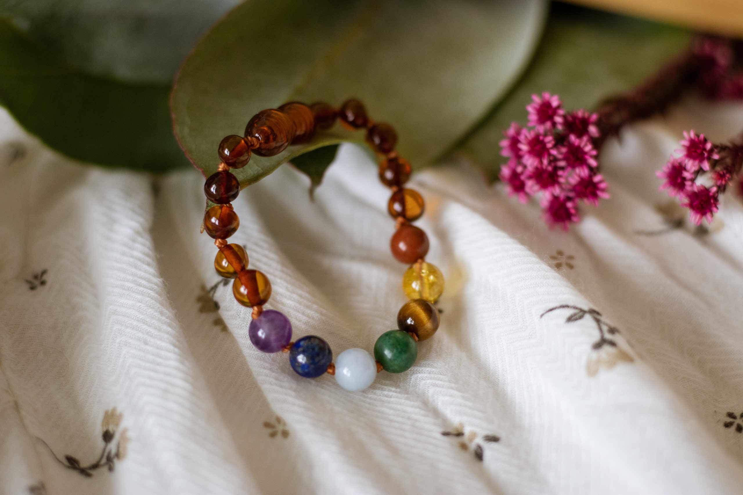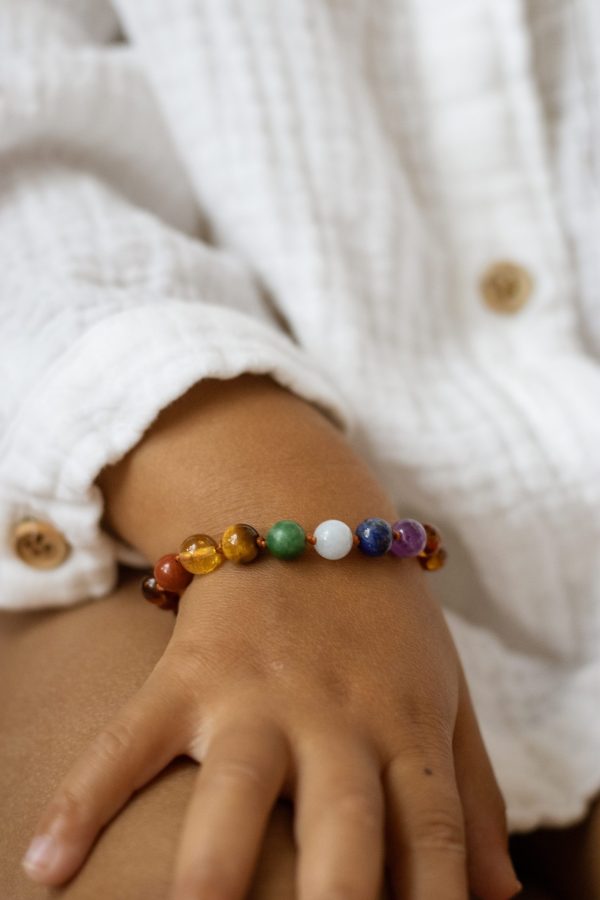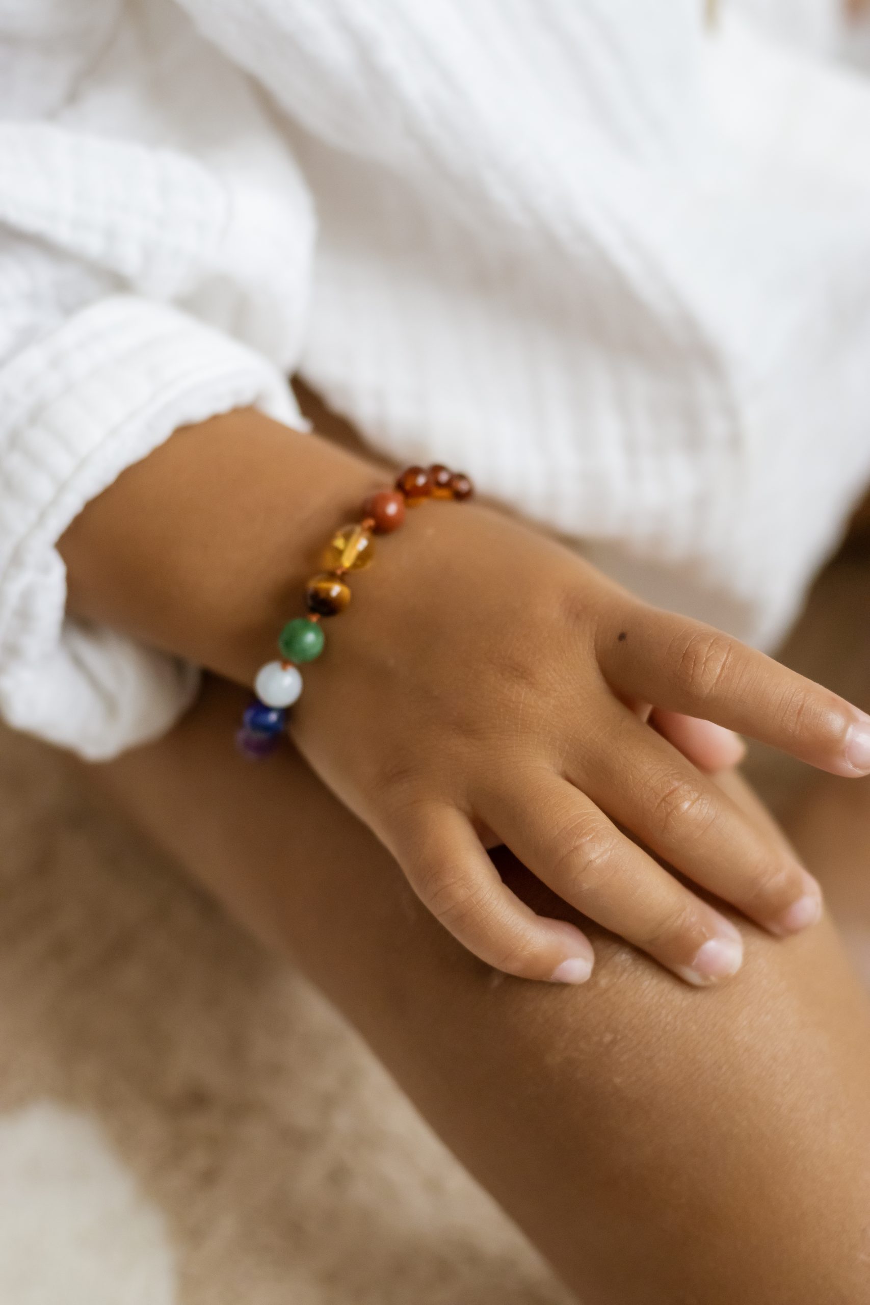 Barnsteen armband regenboog (African Jade, Aquamarine, Tiger Eye, Lapis Lazuli, Citrine, Amethyst and Red Jasper).