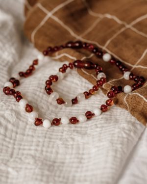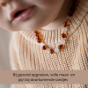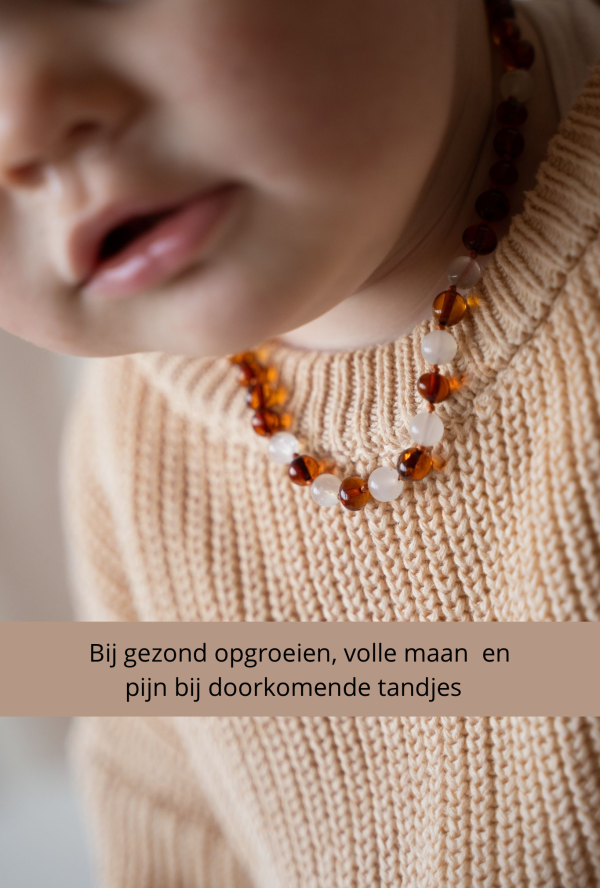 Veel moeders zweren bij de verzachtende werking van barnsteen voor hun baby bij het doorkomen van de tandjes. Dit armbandje is met de hand gemaakt. Na iedere barnsteen zit een knoopje om te voorkomen dat de losse steentje ingeslikt kunnen worden mocht de armband breken.