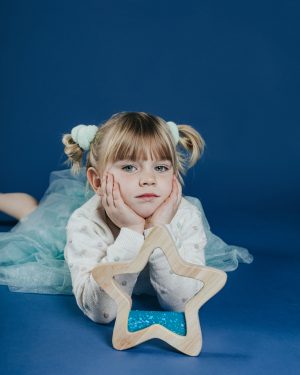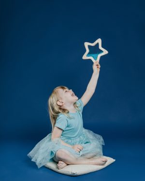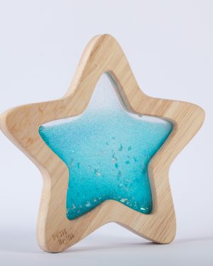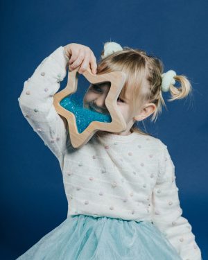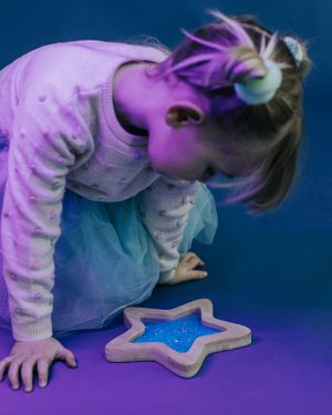 Een klein stukje van de melkweg binnen handbereik! Alle magie van onze flessen, nu stervormig, met een beukenhouten frame, ideaal voor de handjes van de allerkleinsten. Onze sterren zijn gevuld met kleurrijke vloeistoffen, glitter en fluorescerende vloeistoffen die oplichten in het donker en elke keer dat je ze schudt je fantasie prikkelen. Het enige dat nodig is, is een beweging om je te verbazen over de uitbarstingen van sterren en de effecten die licht creëert als het er doorheen gaat! Vanaf 6 maanden.